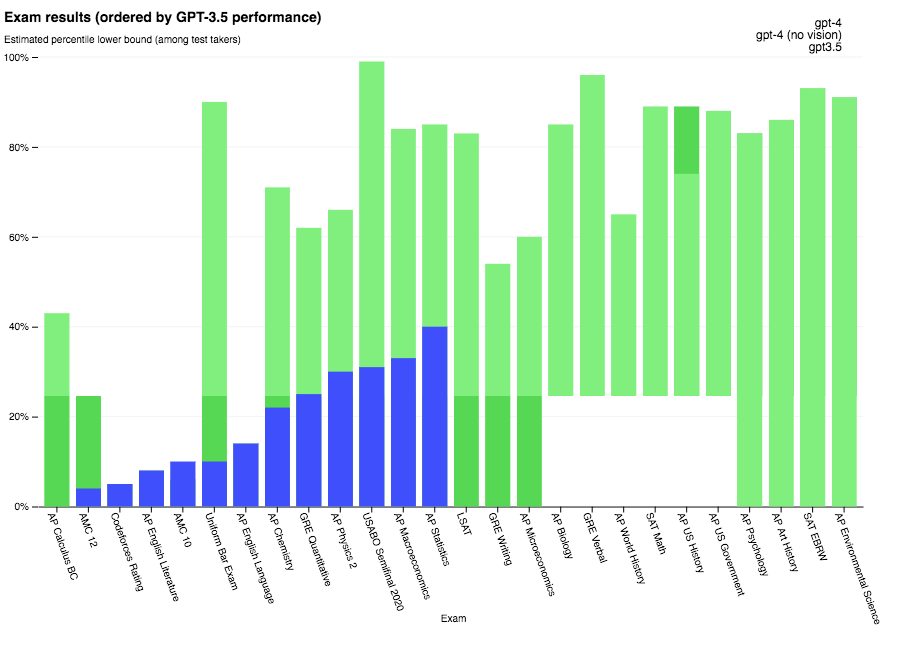 So, to go back to my analogy of AI as the calculator of our generation, teachers’ initial response is to push back against AI as just a way to cheat, make students lazy, to eliminate the need for classes. So lets start there- yes AI is quickly becoming a way for students to cheat the system especially when it comes to some essay writing and simple straightforward assignments. It doesn’t take long to put a prompt into the generator and have it spit out a passable essay. Give it a few more prompts or use iterative prompting and it won’t be long before you have a really great essay. If you don’t believe me just check out the difference in ChatGPT’s ability to pass tests and how far it has come from version 3.5 to 4.